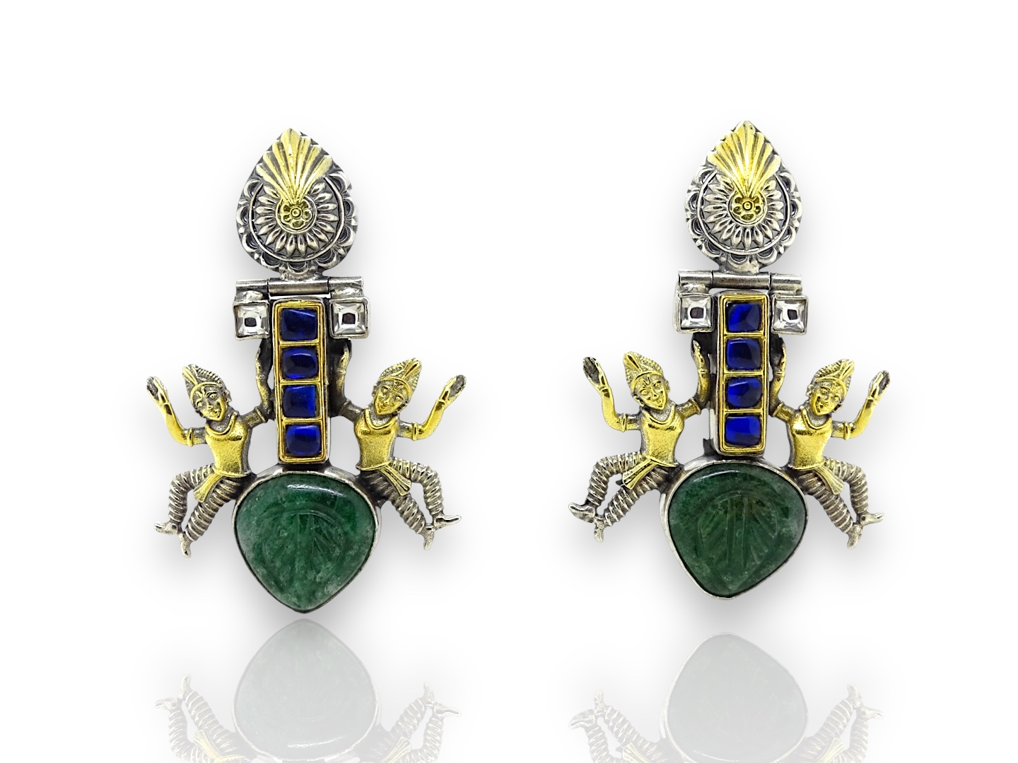 Blue kundan & green stone earring