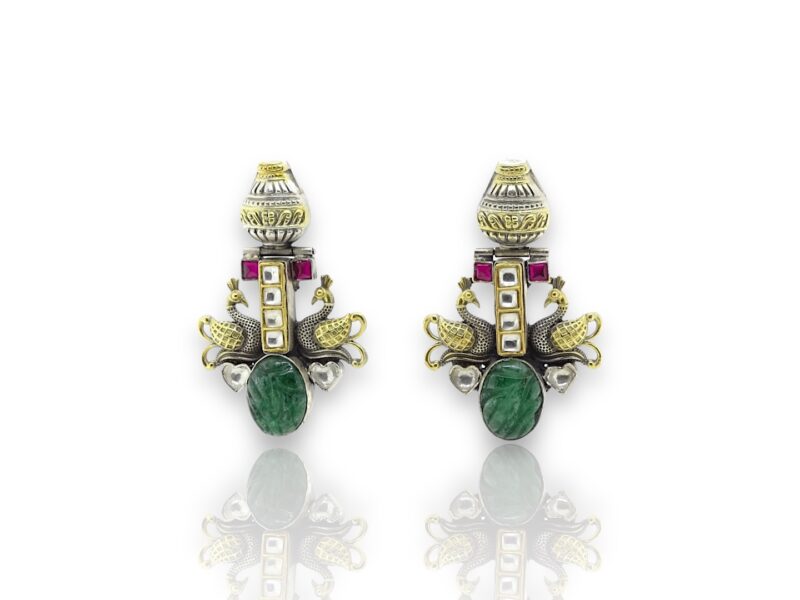 Green stone white kundan earrings
